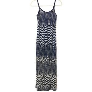 Fire Los Angeles Maxi Dress Size Small Navy Blue and Gray Chevron Sleeveless