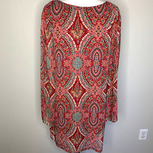 Fire Los Angeles Red Patterned Bell Sleeve Shift Dress L NEW