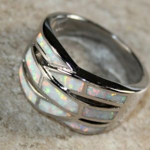 Beautiful white fire opal sparkly ring! Shows off many colors as light hits it! Ring is approximately 1/2" in length and 3/8" in width. Size 6.