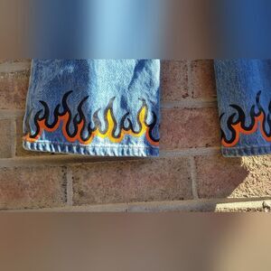 Women's Glassons Jeans Fire Print Size 8 (New with Tags). They're brand new and have never been worn. Cool fire graphic that is not faded and has vibrant colors.