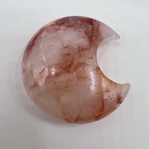 A fire quartz crystal crescent moon is a stunning stone with vivid red hematite inclusions. Metaphysically, it balances mind, body, and spirit, enhancing focus and clarity while promoting grounding and protection. This crystal aids in releasing negative energies and fostering emotional healing.