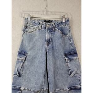 Fire & Rain Blue Denim Wide Leg Cargo Jeans Junior Women's 1 Stretch
