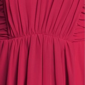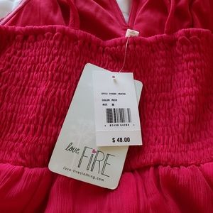 New with tags, juniors size medium, fit me as a size 5, red fluttery chiffon dress with spaghetti straps that criss cross in back.