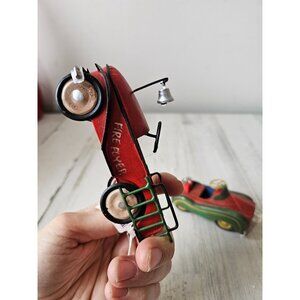Vintage Handcrafted Metal Fire Truck & Car Ornaments