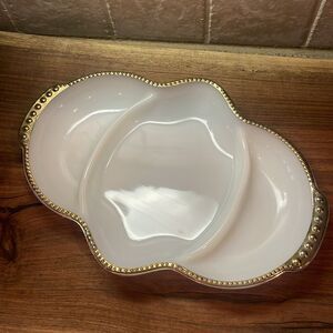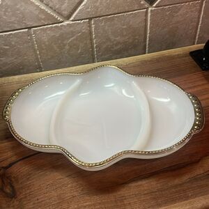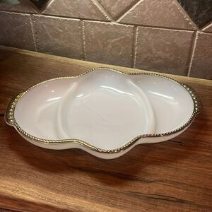 Fire King Anchor Hocking Milk Glass Relish Tray Divided Dish with Gilded Trim
