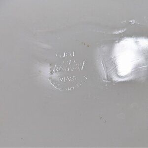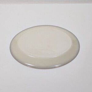 This Fire-King oven ware serving platter features a durable cream glass design enhanced by a refined gold trim. Ideal for displaying or serving dishes, its mid-century elegance complements both modern and vintage table settings. A valuable addition to a collector's display or functional kitchen decor.