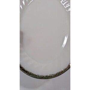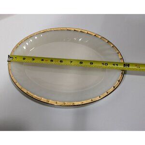 Fire-King Oven Ware Cream Oval Glass Serving Platter With Gold Trim Vintage