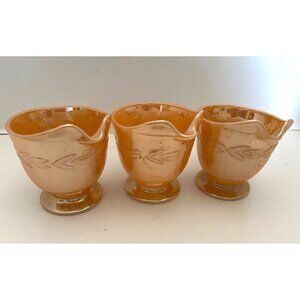 FireKing Peach Luster 3 Cream Pitchers Laurel Leaf Anchor Hocking