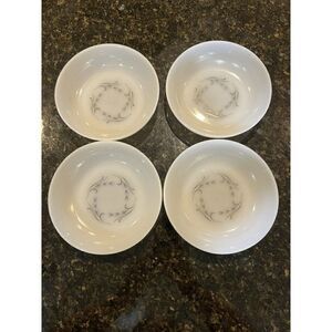 Fire King Small Soup Cereal Bowls Dessert Milk Glass Silver Wheat Set of 4 Oven