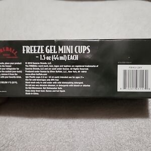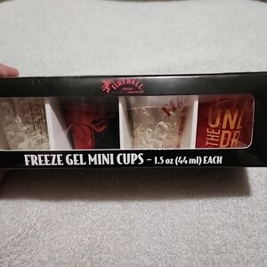 Set of Fireball freeze gel mini cups. Perfect for chilling drinks. Features bold red and black design.