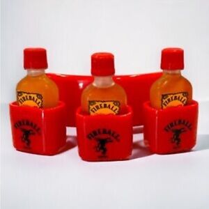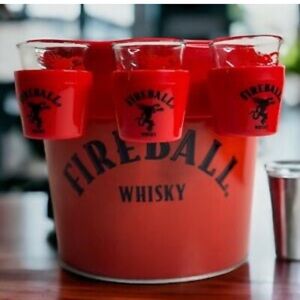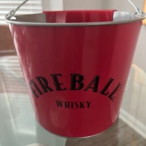 Fireball Red Galvanized Metal Canister Bucket & 3 shot Fireball and T Shirt