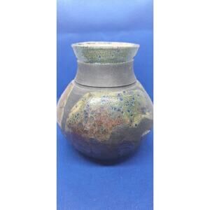 Abstract glazed studio art pottery vessel in excellent vintage condition. From the estate of a sweet 95-year-old great-grandmother. Beautiful and unique. Marked with "LEE."