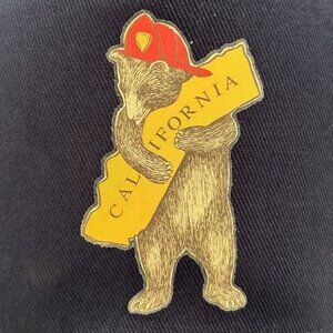 Firefighter Bear Hug California navy blue trucker style baseball hat cap. Adjustable strap in back. This hat was created as a result of the Eaton and Palisades fires in Los Angeles and were sold as a fundraiser by San Francisco Mercantile and to honor firefighters. Worn a few times and in great condition. Has been machine washed and air dried, and it kept its form very well. Great cap!! There is also a Firefight Bear Hug California T-shirt for sale in my closet. See last photo.