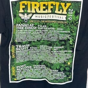 Firefly Music Festival Black Short Sleeve Tshirt 2019 size S Post Malone, Travis Scott, Panic at the Disco