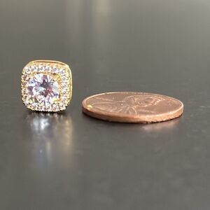 Fireframe Square Halo Earrings – .4” Gold Plate Brilliant Cut Crystal Studs