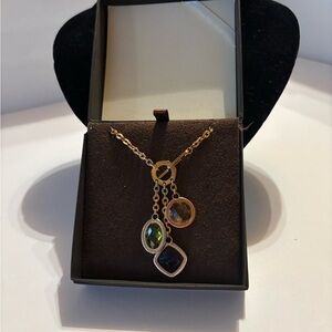 Brand new without tags Firenze Italian 14k gold filled rose gold necklace. Beautifully detailed necklace made in Florence Italy. 3 stones Topaz, Amethyst and Peridot. This necklace is 18” long, has a unique hook for a clasp and it clasps on front. I’ve had it stored in the original box I bought it in.