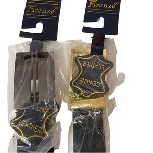 Firenze Bundle of 2 Black 100% Genuine Leather 1 Glossy Flat (1.25” Wide) with a Square Gold Buckle and 1 Flat Belt (1.25” Wide) with Silver Buckle Mem’s Size 52. These belts are new with tags and in manufacturer’s packaging.