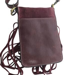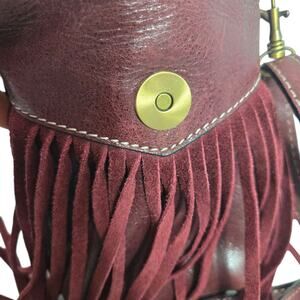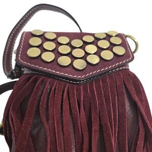 Firenze Bella Fringe Leather Bag Red Studded Crossbody Pouch Adjustable Small