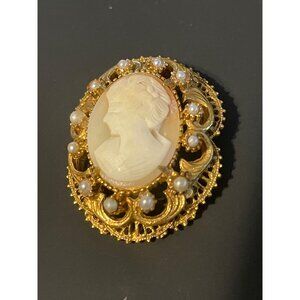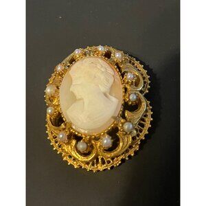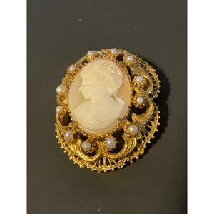 Firenze Cameo Left Facing Lady Vintage Pendant Brooch
