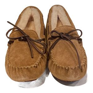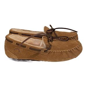 Fireside Dearfoams Slippers Womens 6 Suede Shearling Victoria Moccasin New