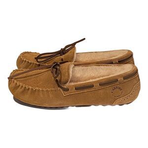New Womens Fireside by Dearforms Victoria Moccasin Slipper - Shearling lined - Chestnut brown