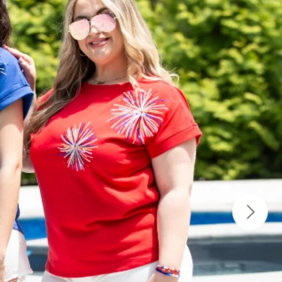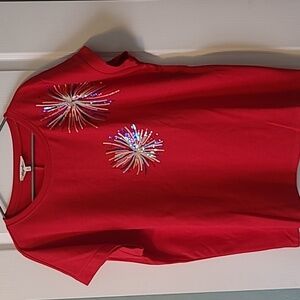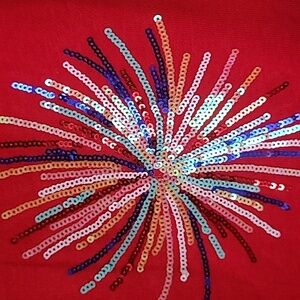 New! Ordered online, cannot return. Unfortunately, it is too big on me. Super cute, bright red, with sequence fireworks. Inside is a comfortable satin finish.