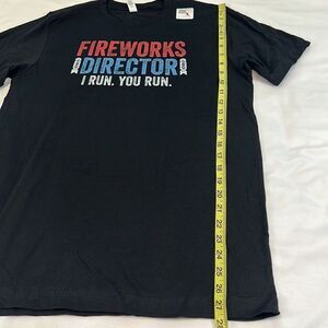* Style: Short sleeve, crew neck, “Fireworks Director: I Run. You Run.” Graphic t-shirt