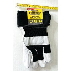 NEW! Firm Grip Goat Skin Leather Gloves Large Black White Safety Cuff No Break-In. Tough working gloves.