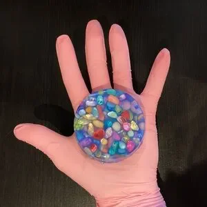 Firmer/thicker than your standard picky pad! I made these for myself when I discovered how helpful picky pads were for helping with my OCD but the standard ones just weren’t cutting it. These non-toxic pads take longer to get through, require more effort, and offer a variety of size, shape, texture, color of beads/charms. Be aware each pad is original so there will be reasonable variations between the photo and the pad you receive.