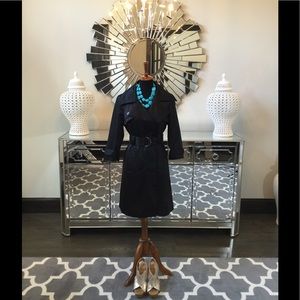 Stunning Marciano black jacket. Beautiful color and sheen fabric. Contemporary cuff and collar details. Cinched waist gives you amazing structure and shows off your curves. Timeless and classic. A fabulous coat.