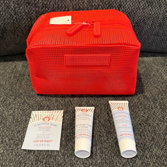1 x First Aid Beauty Red Mesh Cosmetics Bag