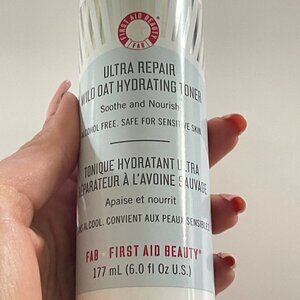 First Aid Beauty New Alcohol Free Ultra Repair Wild Oat Hydrating Toner. An alcohol-free, oatmeal-powered toner that hydrates, relieves, and soothes skin while supporting overall skin health for a balanced complexion. Skin Type: Normal, Dry, and Combination Skincare Concerns: Lightweight Liquid. Formulation: Dryness, Fine Lines and Wrinkles, and Redness. Highlighted Ingredients: Colloidal Oatmeal: Helps soothe and protect dry or distressed skin. Wild Oats: Help soothe and relieve irritated skin. Honey: A humectant rich in antioxidants that helps soothe, soften, and moisturize skin. Offers always welcome!