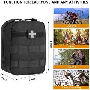 ☺EASY TO USE: The Molle medic pouch has two-way zippers and silent cord pulls, fully opened for accessing the first aid supplies easily once emergencies happen. There are elastic bands on both sides to prevent items from falling when the medical bag is fully opened.