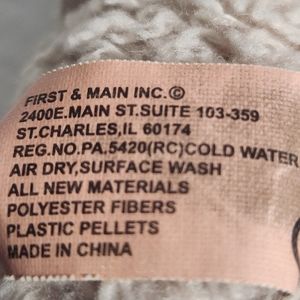First And Main Tender Teddy Stuffed Animal. Pre-Loved, has a heart patch sewn onto his chest. Color: Cream.