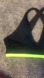 Sleek black sports bra with vibrant neon green band. Ideal for active wear. Lightly padded