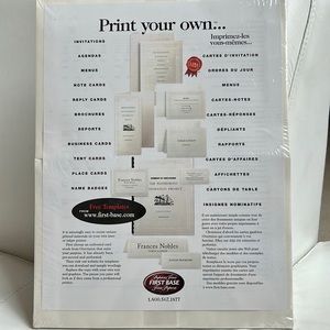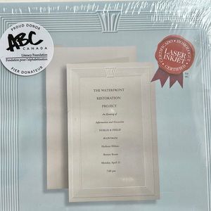Brand New in sealed package. Create and print your own invitations with these 47 lb. bond cards. Invitation cards fold at 8-1/2" x 5-1/2" and offer an elegant Capital Emboss design. Each sheet has one card. Cards are acid-free, lignin-free and compatible with laser and inkjet printers.