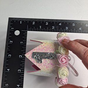 First Birthday Girl Crown Hats Party Celebration White pink Glitter with white and pink roses