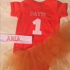 Personalized just for you. Each is made to order so please be very clear on what color and design you would like. Outfit includes personalized onesie, headband and tutu. Please allow 1-2 weeks processing time before shipment.