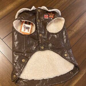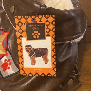 First Class Fido - Aviator Pilot Brown Fake Leather Furr Lined Costume Jacket M