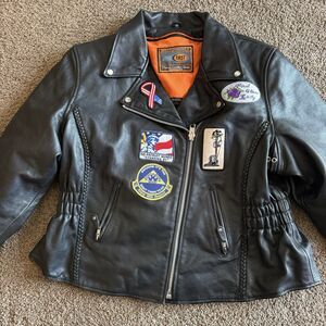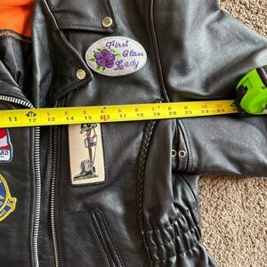 First Classics Leather Gear Women's Motorcycle Biker Jacket Black Liner Patches