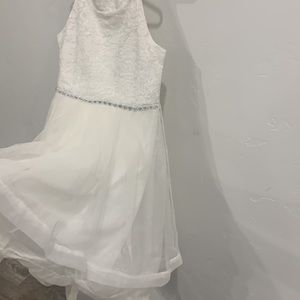 Only worn once. Purchased at boutique in Texas and it’s great quality, just no need anymore. Excellent condition and hope it goes to a good home. We did cut the tag out of it because it was “itching” my daughters back. She was 7 years old when she wore it, believe it is a size 8 technically.