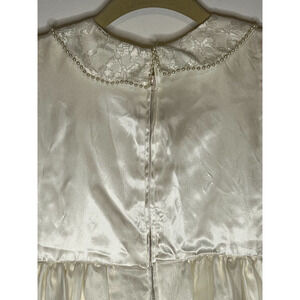 First Communion Dress Girls Size M White Sheer Lined Bows Peals Lace Satin Trim