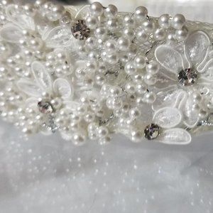 First Communion Flower Girl Veil attached to comb, flowers, pearls 22" long NIP