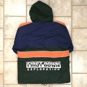 First Down Exploration-Men's Sz XL-Blue/Green/Orange-Puffer Jacket-Duck Down-VTG
