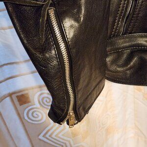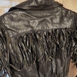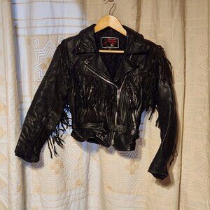 🏍️ First Fringe Genuine Cowhide Leather Biker Jacket Cropped Black 🤠