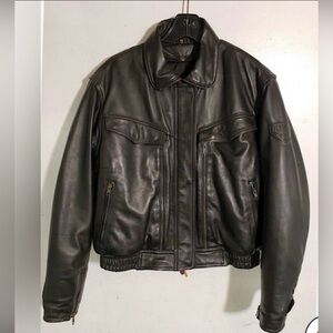 First Gear Scout Leather Thermoliner Motorcycle Jacket, Black, Mens 46
