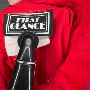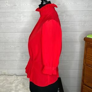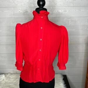 First Glance 80’s vintage red pleated high neck blouse Size Small