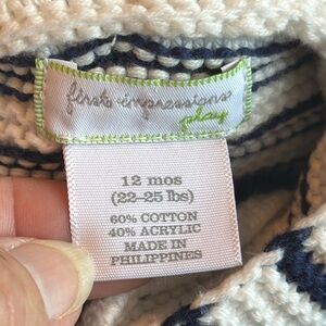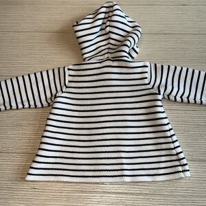 First Impression Play Button Front White with Blue Stripe Hooded Sweater 12 Mo