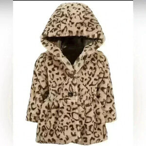 First Impression Toddler Girl Leopard-Print Faux Fur Hooded Coat, 4T