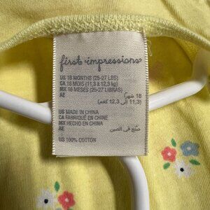 Brighten up your little one's day with the First Impressions Baby Girls Floral Butterflies Dress! Made from soft cotton, this adorable yellow dress features a charming floral and butterfly print, perfect for sunny outings. Designed for babies in size 18M.